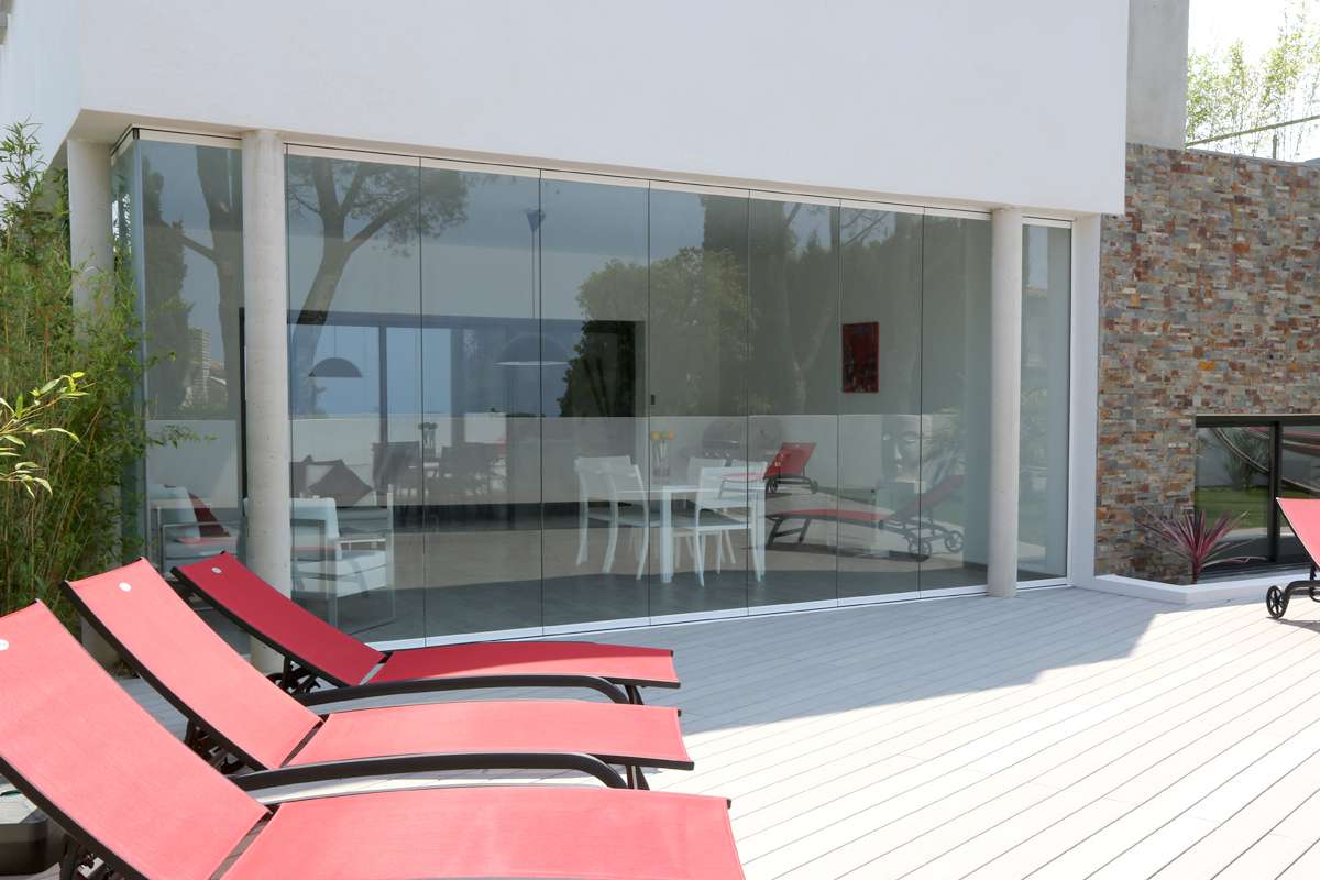 Le rideau de verre SEEGLASS ONE® est un système de fermeture en verre sans profils verticaux de haute qualité, permettant de créer un espace de vie agréable et d'augmenter la valeur de vos biens immobiliers. Les systèmes coulissants / pivotants SEEGLASS ONE® sont utilisés dans différents domaines, à commencer par les jardins d'hiver, les balcons, les loggias, les terrasses, les vérandas, les pool houses, les commerces ou encore les pergolas. Entièrement sur-mesure, les rideaux de verre s'adaptent à n'importe quelle configuration et notamment aux structures avec des passages d'angle. Le rideau de verre SEEGLASS ONE® s'adapte parfaitement à notre pergola, car elle est entièrement renforcée, ce qui lui permet d'accueillir des fermetures en verre suspendues tel que le rideau de verre.