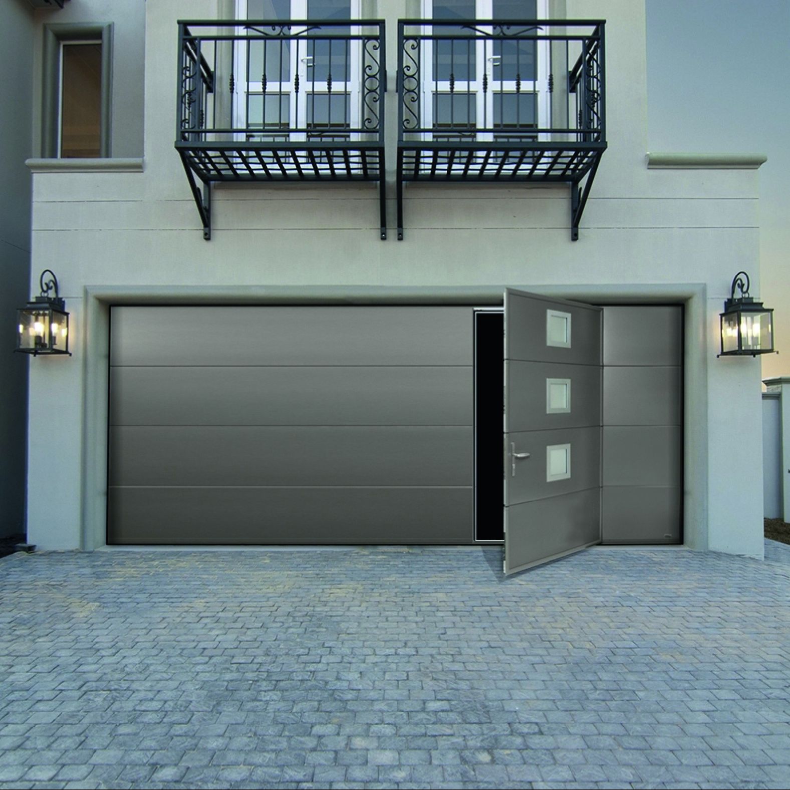 Ce type de porte offre l’avantage de faciliter l’accès piétons en permettant une ouverture partielle à la façon d’un portillon. La porte de garage sectionnelle latérale existe en ouverture manuelle ou motorisée pour un plus grand confort d’utilisation.